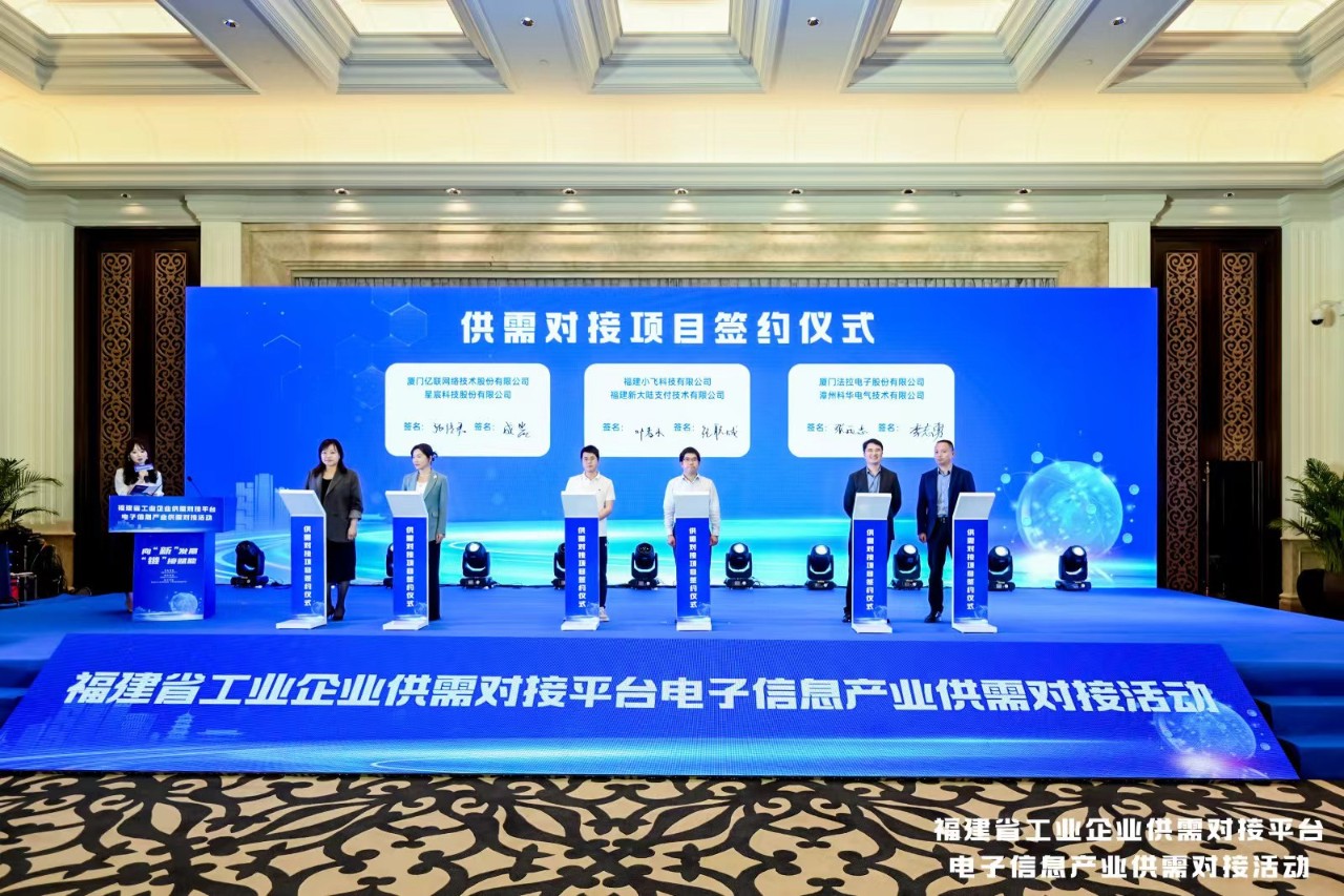 活动现场举行了福建省新型显示制造业创新中心授牌仪式,发布了31款具有先进性、新颖性和适用性等特征的电子信息新产品,展现了我省电子信息产业新技术、新产品等创新成果。冠捷电子、立达信、长威信息、合信创展等企业代表现场进行新产品推介,厦门天马微、科华数据、星网锐捷等龙头企业发布采购需求。现场促成省内26家电子信息企业达成了15个合作项目,意向签约金额共计27.6亿元。