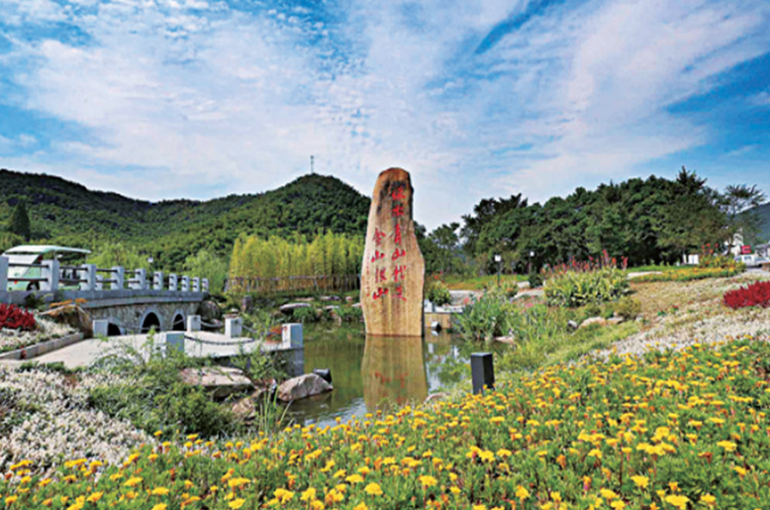 浙江安吉余村村头竖立的铭刻着“绿水青山就是金山银山”的石碑