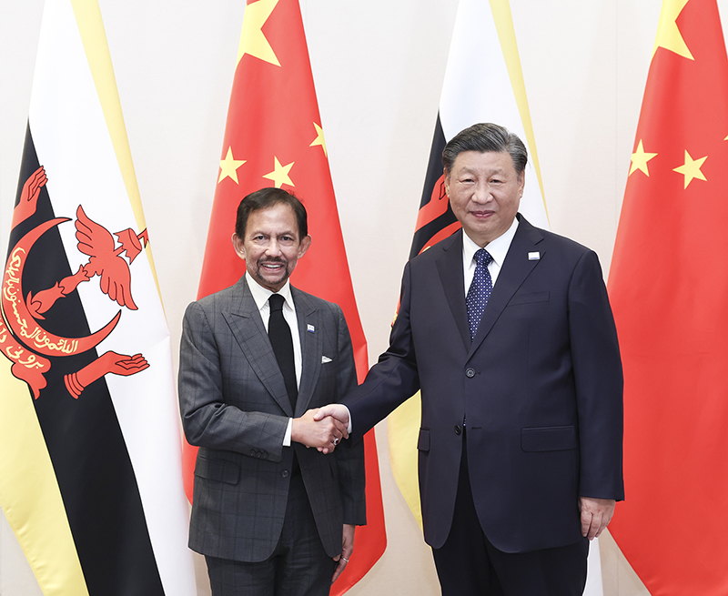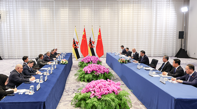 当地时间11月16日下午,国家主席习近平在旧金山会见文莱苏丹哈桑纳尔。