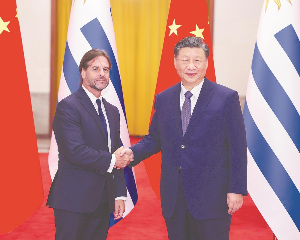习近平指出,2023年是中乌建交35周年和乌拉圭加入共建“一带一路”倡议5周年。建交35年来,两国始终坚持相互尊重、平等相待、合作共赢,各领域交流合作蓬勃发展。特别是面对新冠疫情,两国守望相助、同心抗疫,中乌战略伙伴关系得到升华。中方愿同乌方一道,以建立全面战略伙伴关系为新起点、新坐标,提升双边关系水平,丰富两国合作内涵,将中乌关系打造成为不同体量、不同制度、不同文化国家团结合作的典范,更好服务各自国家发展,增进两国人民福祉。