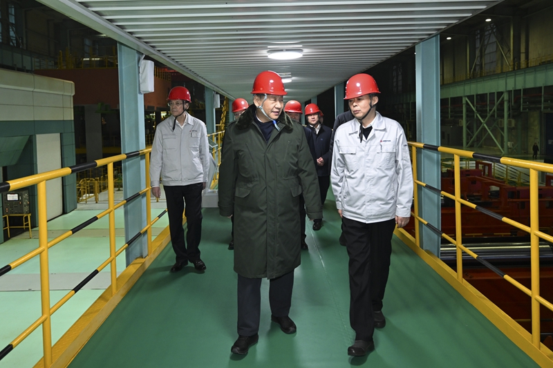 1月22日至24日,中共中央总书记、国家主席、中央军委主席习近平冒着严寒来到辽宁,看望慰问基层干部群众。这是23日下午,习近平在本溪市考察本钢板材冷轧总厂第三冷轧厂车间。