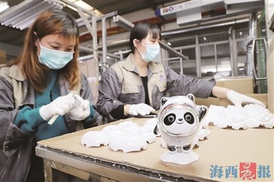 来到位于海沧马青路的威斯坦公司,只见“冰墩墩”和“雪容融”憨态可掬地坐在公司大门的两侧。然而,由于“冰墩墩”的火爆,这也是公司目前仅有的成品。