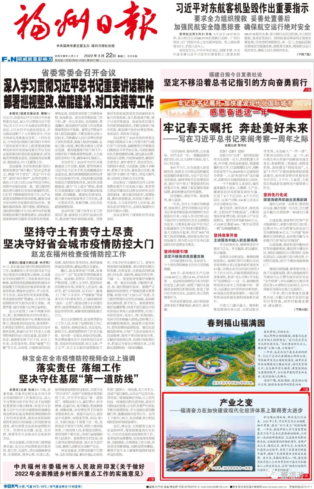 3月22日,福州日报《牢记总书记嘱托 加快建设现代化国际城市 感恩奋进这一年》专栏推出“福清打造现代化海滨山水城市系列报道”之一《产业之变 福清奋力在加快建设现代化经济体系上取得更大进步》。