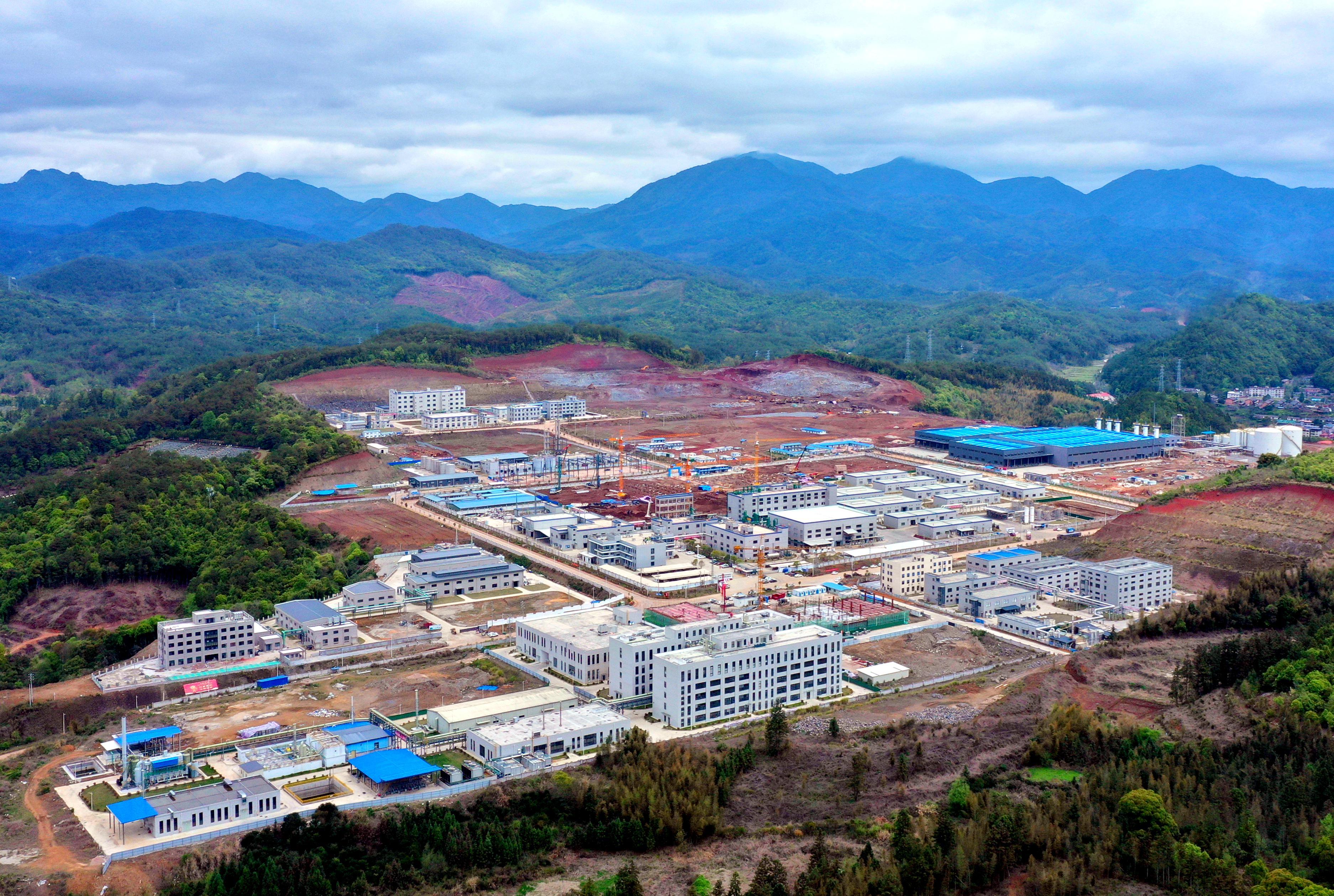 3月23日,走进三明市明溪县经济开发区,在三明市海斯福化工有限责任公司高端氟精细化学品项目(二期)施工现场,工人们正抢抓晴好天气推进项目建设。