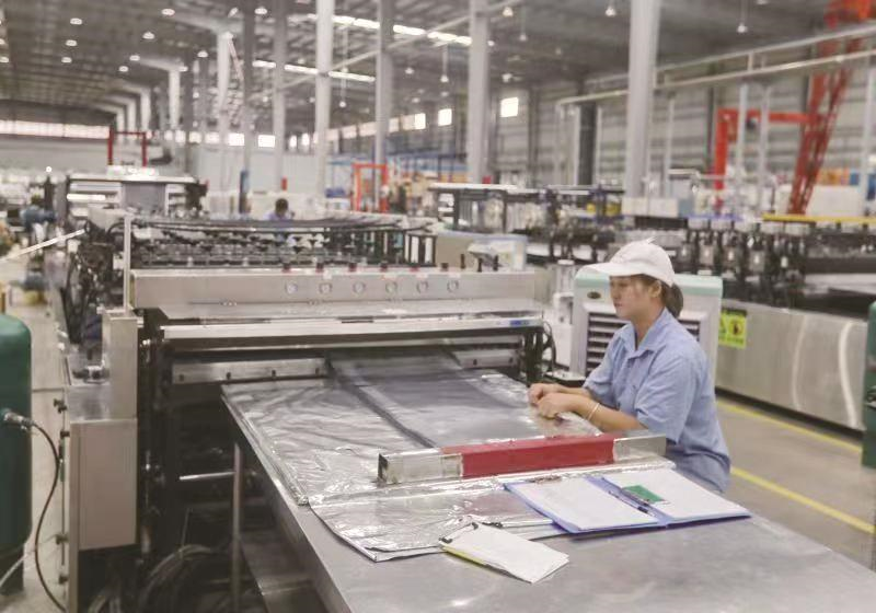 连城工业园赛特新材产业园,赛特(三期)高阻隔膜生产项目正加紧生产,全力满足下游真空绝热板生产的需要。