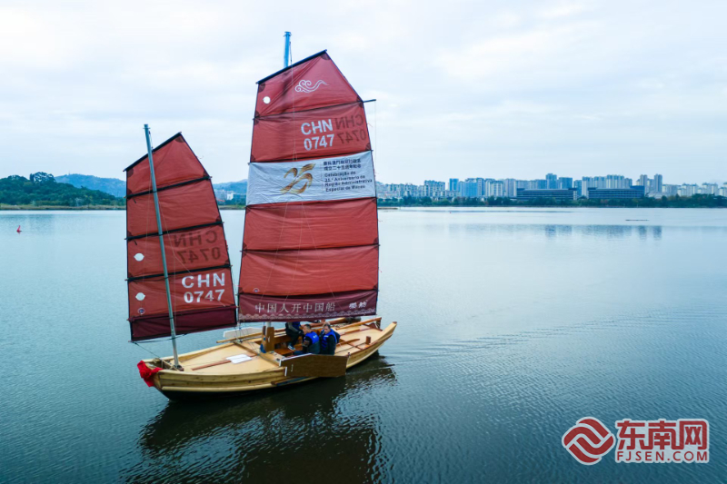 世界首款中式现代木帆船在宁德首航 庆祝澳门回归祖国25周年。