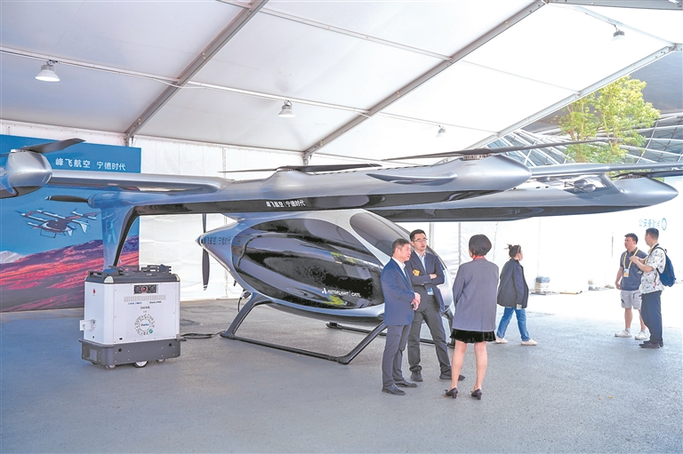 4月14日,记者了解到,第五届中国国际消费品博览会1号馆低空经济展区内,由峰飞航空科技有限公司带来的2吨级eVTOL航空器首次亮相消博会。据了解,作为本届消博会主会场单品体积最大展品,该航空器采用纯电动力,搭载宁德时代动力电池。和航空器一起亮相的“宁德智造”还有宁德时代自主研发的储充检一体机器人“CharGo充电狗”,该产品不仅能为新能源汽车提供快捷、安全的移动充电,还能为低空飞行器、机器人等领域提供智能化充电服务。