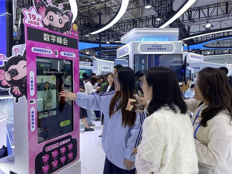 “蝶影AI拍照一体机”吸引不少观众体验。