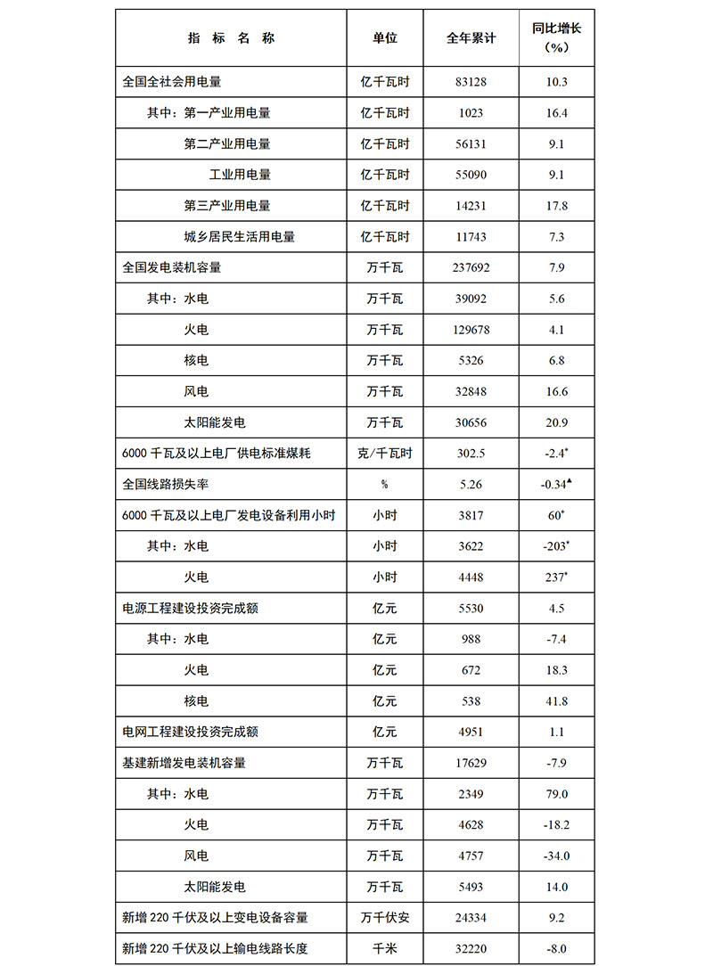 1.全社会用电量为全口径数据,全国供电量为调度口径数据。