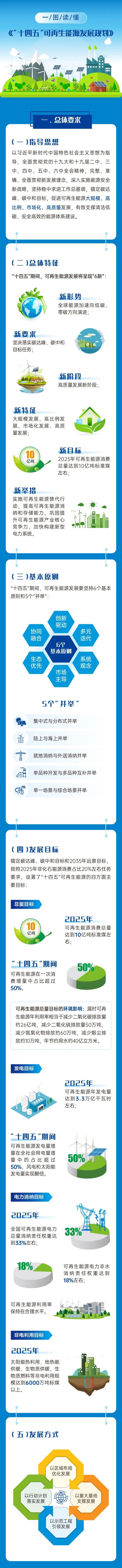 一是总量目标,2025年可再生能源消费总量达到10亿吨标准煤左右,“十四五”期间可再生能源消费增量在一次能源消费增量中的占比超过50%。