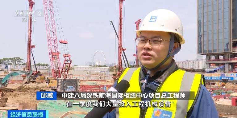 在广东深圳前海国际枢纽中心的施工现场,数十台工程机械设备全力运转,项目负责人告诉记者,今年一季度以来,他们工程不断提速,持续加大工程机械的投入力度,抢抓施工的黄金期。