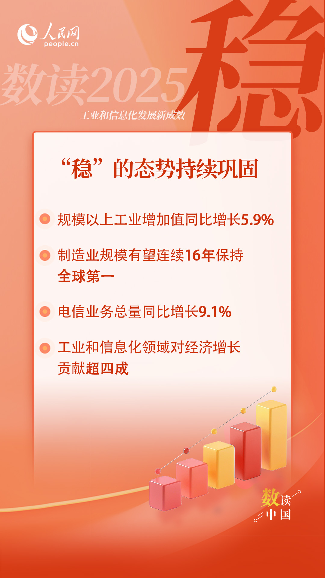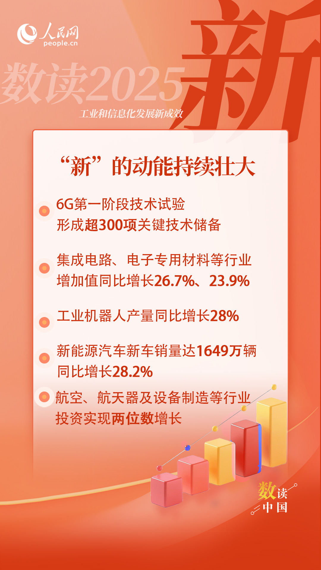 2025年,面对国内外形势深刻复杂变化,工业和信息化系统全面贯彻党的二十大和二十届历次全会精神,坚决扛牢实现新型工业化这个关键任务,工业经济顶压前行、向新向优发展,实现质的有效提升和量的合理增长,全年主要目标任务顺利完成。一起通过“稳、进、新、活”四个关键字,解码2025年工业和信息化发展新成效。
