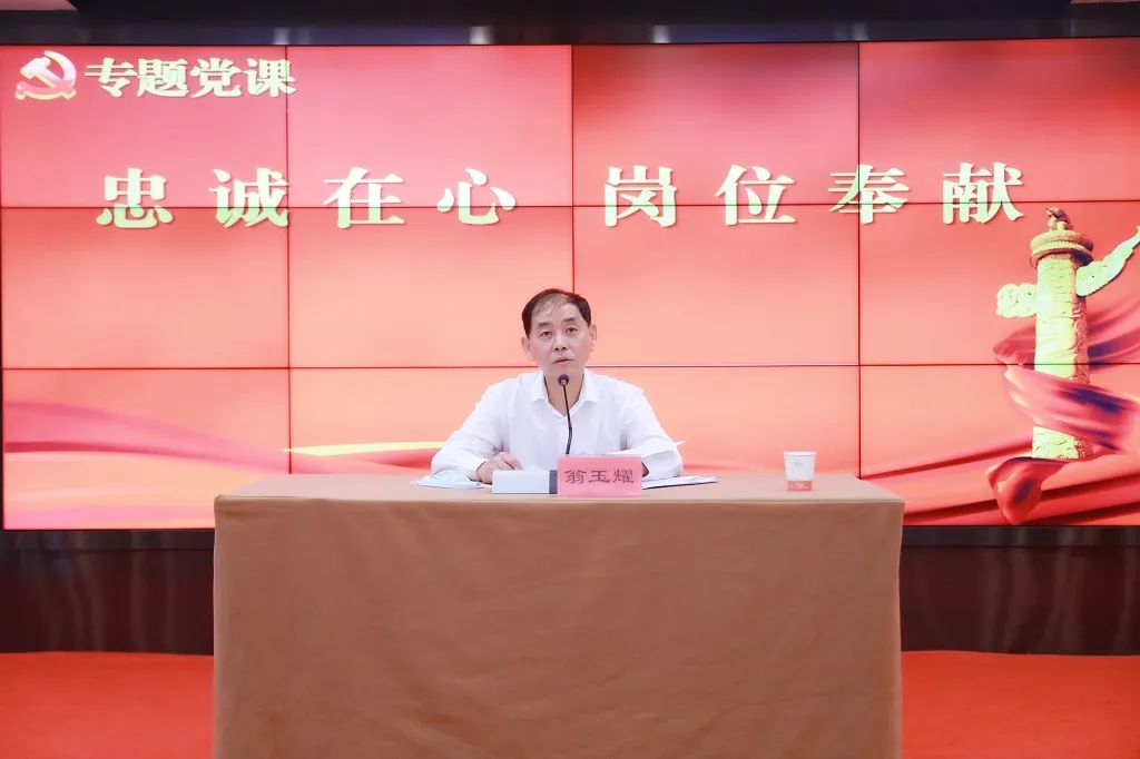 会上,翁玉耀围绕“忠诚在心、岗位奉献”主题,结合学习贯彻习近平总书记重要讲话重要指示精神,结合学习《闽山闽水物华新——习近平福建足迹》和工信工作实际,从六个方面讲授专题党课。