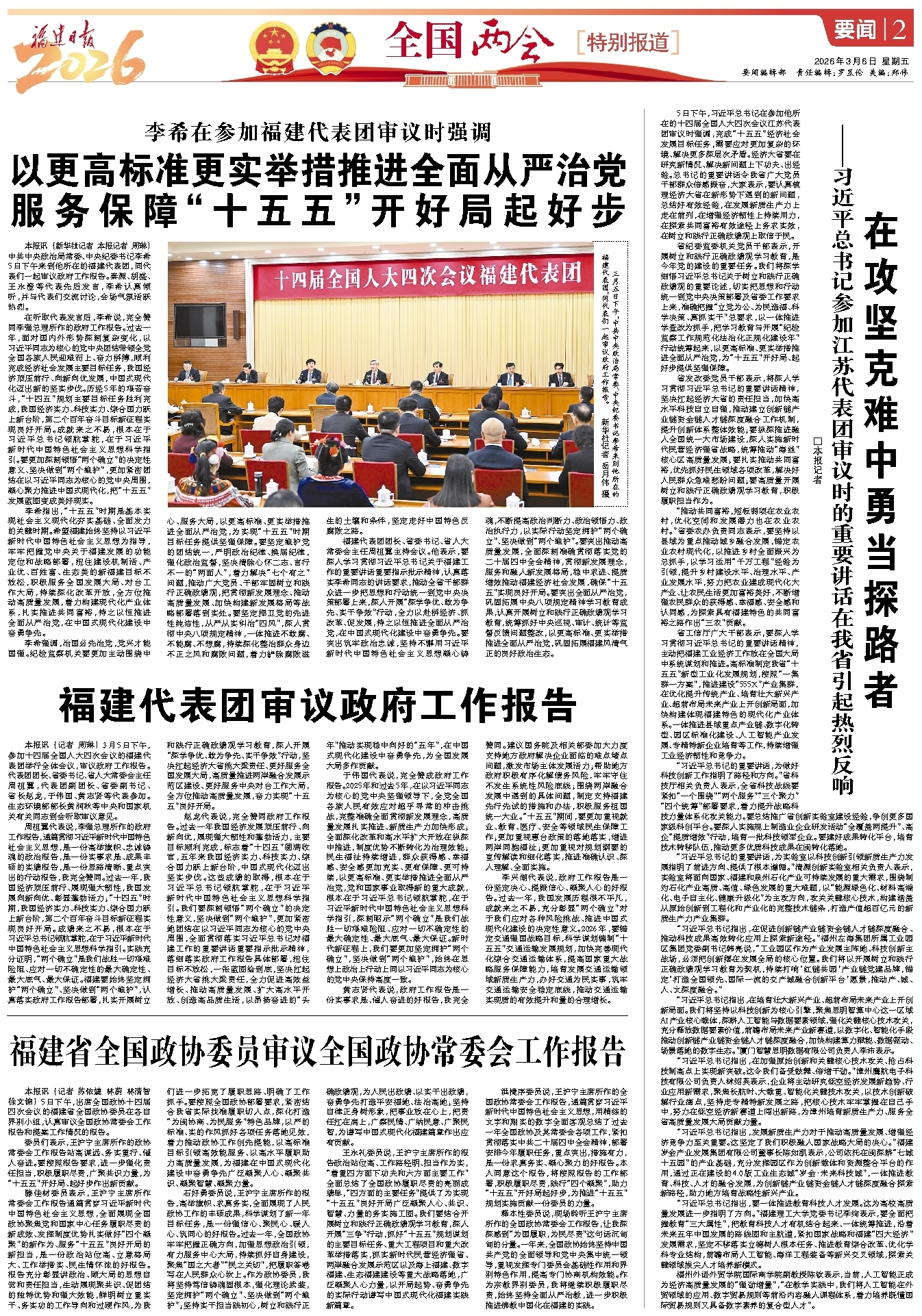 5日下午,习近平总书记在参加他所在的十四届全国人大四次会议江苏代表团审议时强调,完成“十五五”经济社会发展目标任务,需要应对更加复杂的环境、解决更多深层次矛盾。经济大省要在研究新情况、解决新问题上下功夫、出经验。总书记的重要讲话令我省广大党员干部群众倍感振奋,大家表示,要认真梳理经济大省在新形势下遇到的新问题,总结好有效经验,在发展新质生产力上走在前列,在增强经济韧性上持续用力,在探索共同富裕有效途径上务求实效,在树立和践行正确政绩观上取信于民。