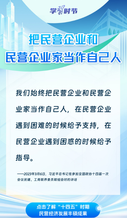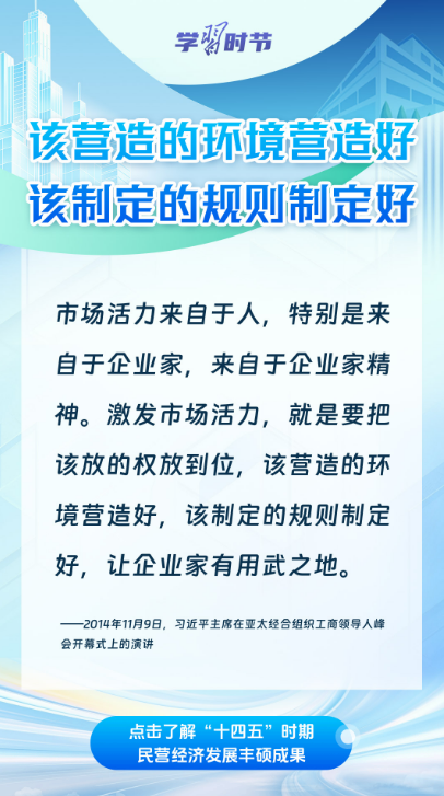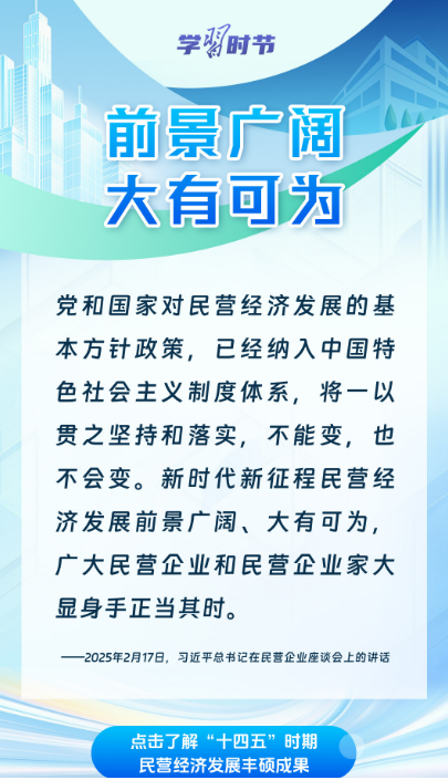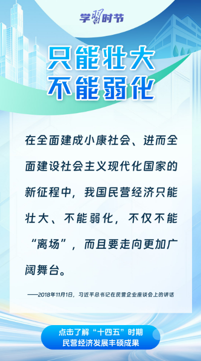 “十四五”时期,广大民营企业和民营企业家笃定信心、乘势而上,为中国经济高质量发展注入了蓬勃生机与强劲动能。通过一组海报,共同学习习近平总书记关于民营经济发展的重要论述,回顾“十四五”时期我国民营经济破浪前行、活力迸发的生动实践与丰硕成果。