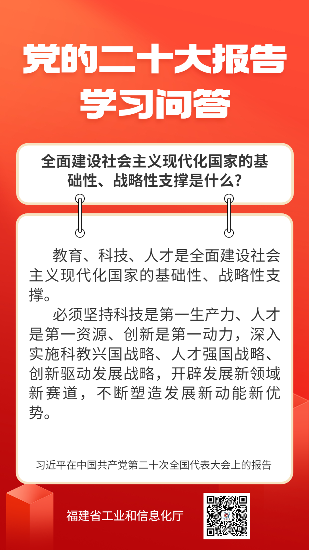 党的二十大报告问答丨全面建设社会主义现代化国家的基础性、战略性支撑是什么?