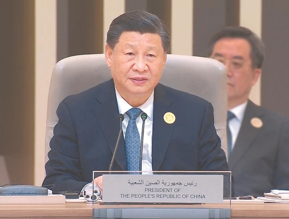 习近平最后指出,中国共产党第二十次全国代表大会明确了以中国式现代化全面推进中华民族伟大复兴的任务和路径。中方将坚持维护世界和平,促进共同发展,推动构建人类命运共同体,以中国新发展为包括阿拉伯国家在内的各国提供新机遇。此次峰会上,中阿双方一致同意全力构建面向新时代的中阿命运共同体,这是中阿关系划时代的里程碑。中方愿以此为新起点,同阿方一道,弘扬中阿友好精神,开辟中阿合作更广阔前景,开创中阿关系更加辉煌灿烂的明天!