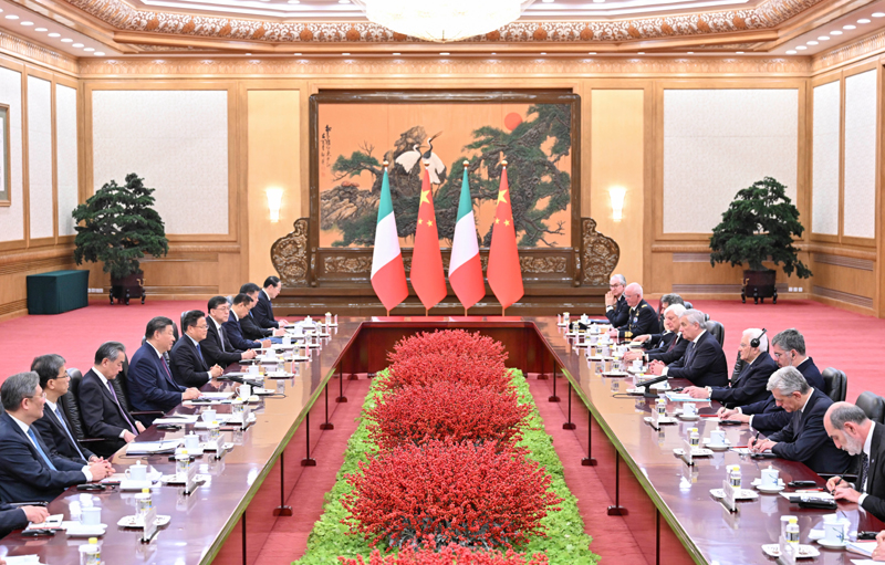 11月8日下午,国家主席习近平在北京人民大会堂同来华进行国事访问的意大利总统马塔雷拉举行会谈。