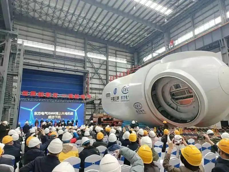 2月22日,我国首台13兆瓦抗台风型海上风电机组在福清顺利下线。