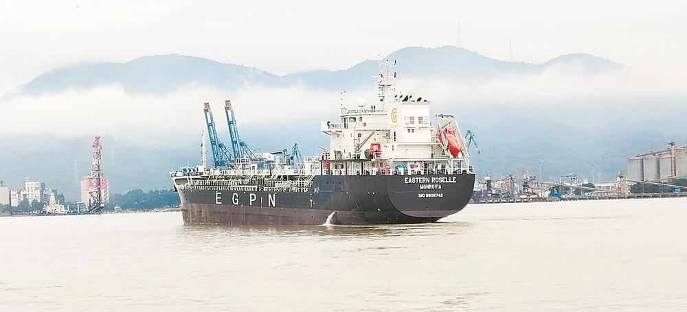 图为福建东南造船有限公司建造的9700吨级成品油轮。