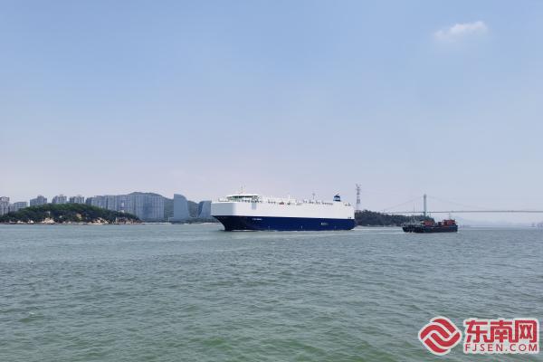 满载着新能源车的滚装船驶出港口(厦门海事局供图)