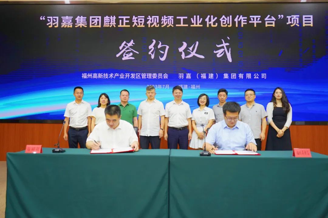 7月7日,“羽嘉集团麒正短视频工业化创作平台”项目签约仪式在福州高新区举行。高新区党工委副书记、管委会主任樊学双,羽嘉(福建)集团有限公司董事长宋长征等出席签约仪式。