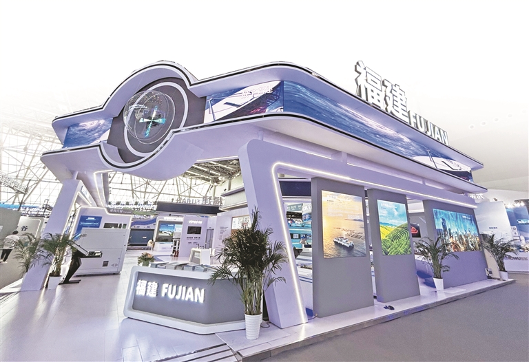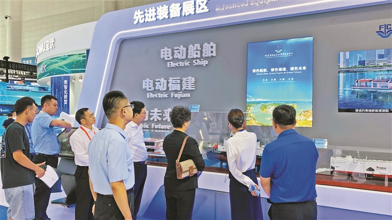 在福建馆的先进装备展区,“电动船舶、电动福建、电动未来”十二个大字尤为显眼,不少参观者来到福建馆的第一站便是这里。