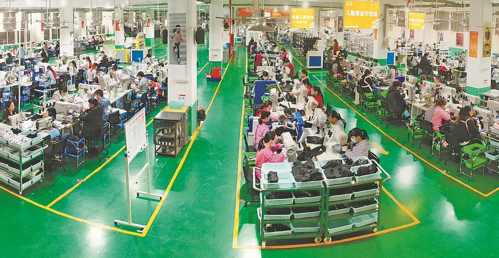力奴鞋业生产车间内,工人在赶制订单。 (资料照片)