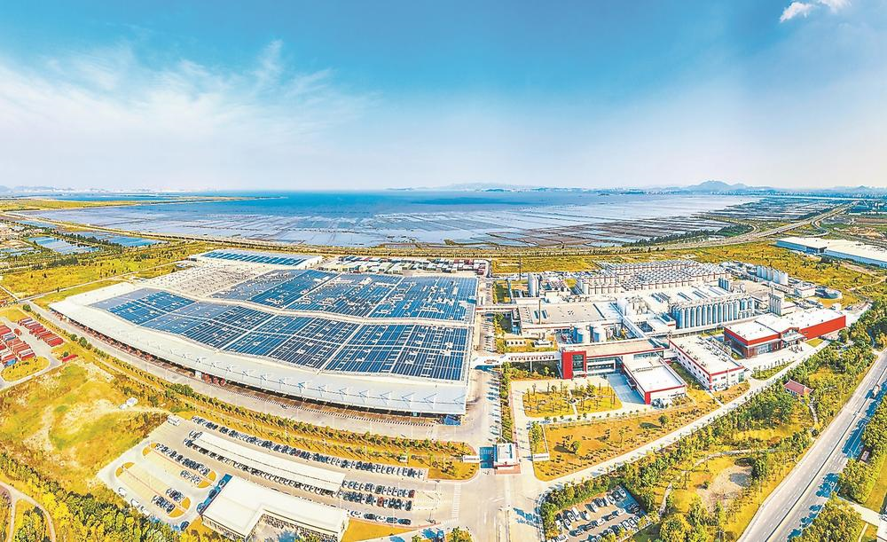 从涵江滨海产业新城上空俯瞰,涵江区食品产业龙头企业——百威雪津啤酒有限公司两座相连的蓝色巨大厂房与不远处的海天连成一线,气势磅礴。这座世界级智慧低碳工厂把“绿色”渗透到生产的每个环节,创造性地降低了总体能耗,不仅节约大量成本,也为企业增添国际竞争力。