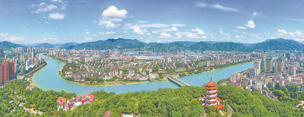 工业与城市和谐共生。图为三明市区沙溪河航拍图。 (三明市委宣传部供图)