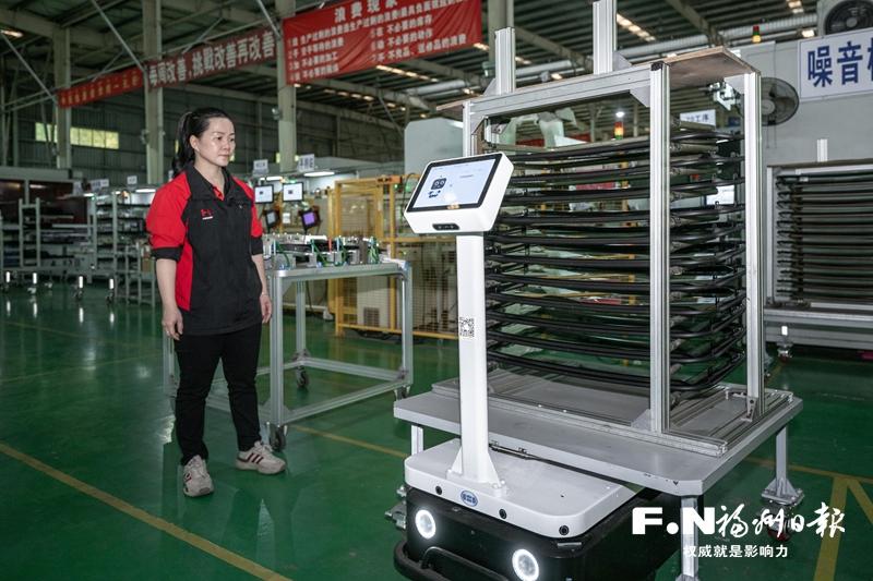 机器人“笨小递”在福州明芳汽车部件工业有限公司生产线上忙碌。