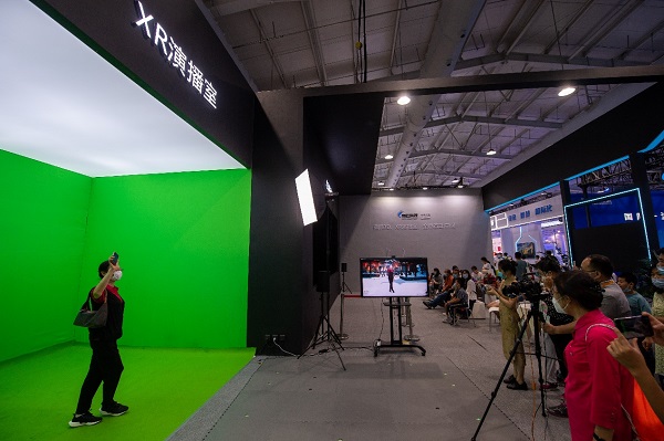 在服贸会首钢园展区的元宇宙体验馆内,参观者正在体验XR演播室。