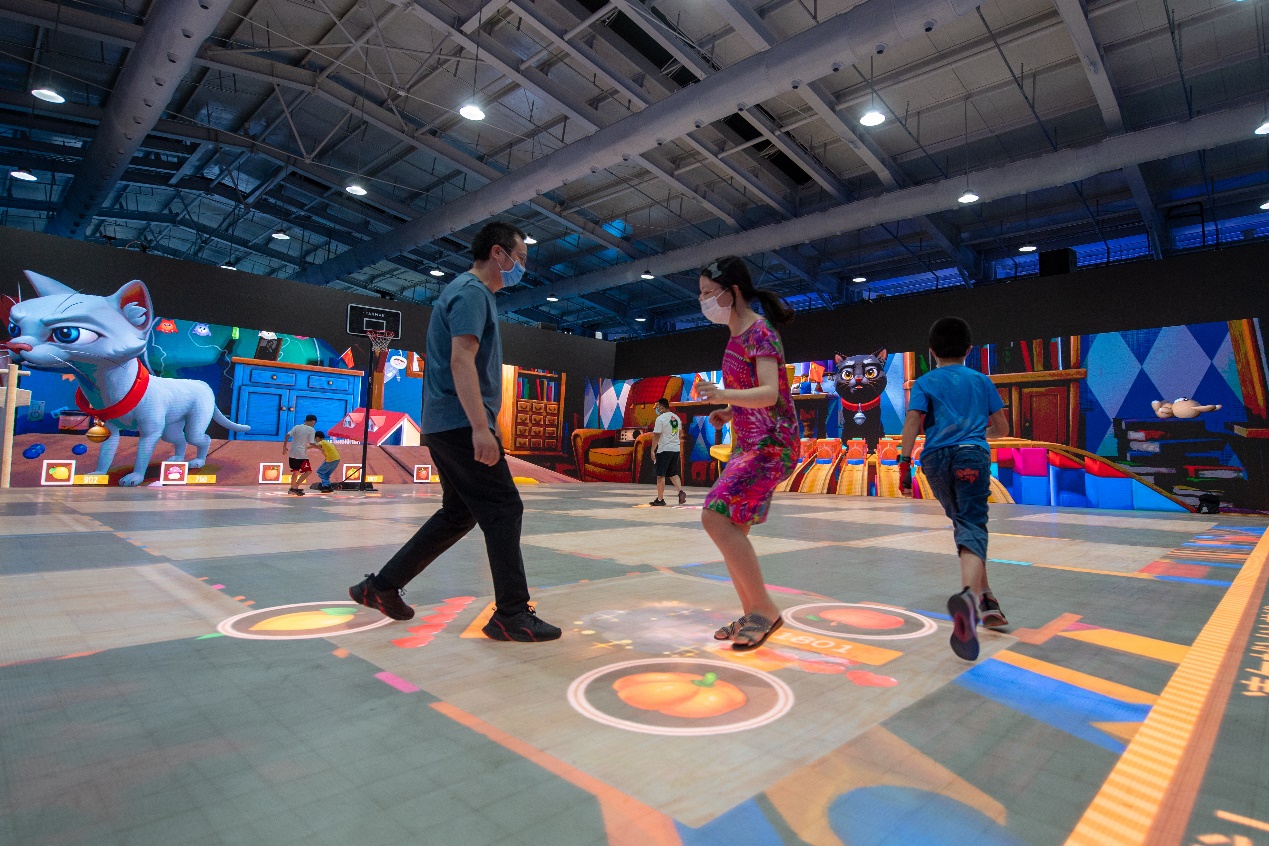 在服贸会首钢园展区的元宇宙游戏馆内,参观者正在体验游戏带来的乐趣。