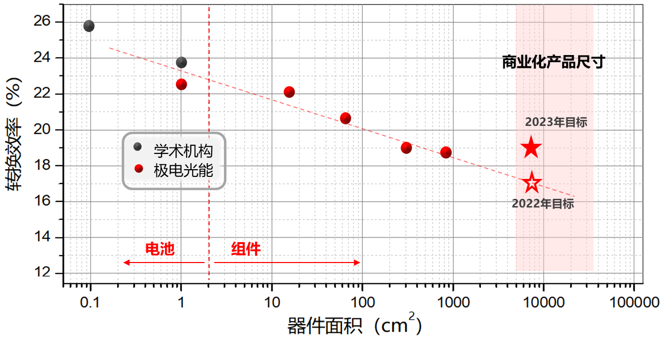 图为极电光能不同尺寸的钙钛矿组件的效率