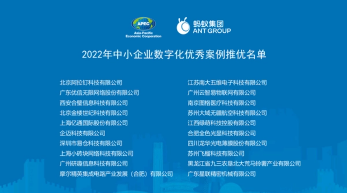 1月10日,为了响应落实《“十四五”促进中小企业发展规划》重点工程-中小企业数字化促进工程,APEC中小企业信息化促进中心和蚂蚁集团联合公布“2022中小企业数字化优秀案例推优企业名单”(以下简称“推优名单”),来自农业、制造、医疗、汽车、服务业等众多行业20个优秀案例成功入选,为中小企业数字化转型之路提供了参考思路。