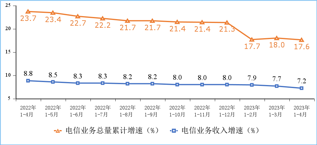 电信业务收入和电信业务总量累计增速。图片来源:工业和信息化部官网