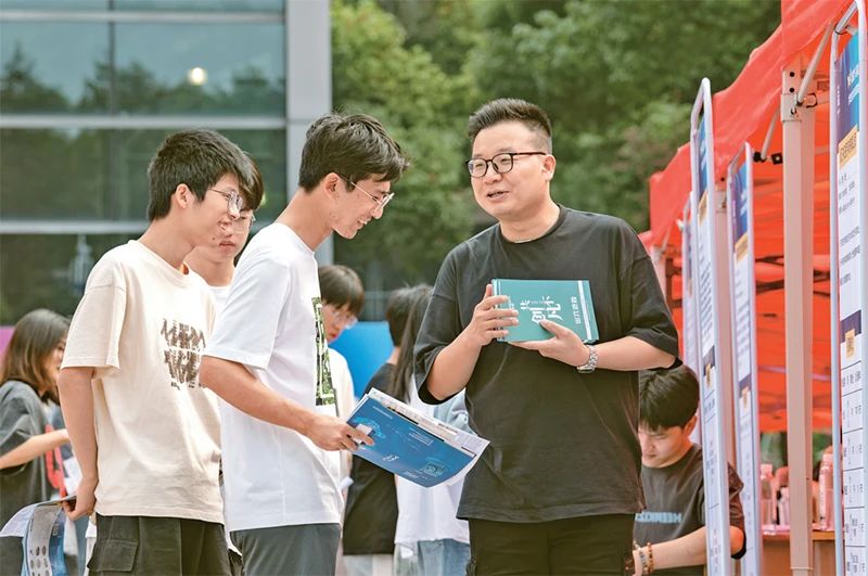 就业是民生之本、财富之源,各地区各部门坚决扛起稳就业责任,千方百计稳定和扩大就业。图为2023年10月19日,2023年大中城市联合招聘高校毕业生秋季专场活动暨“智选金华 青创未来”分会场在浙江省金华职业技术学院举行,大学生正与用人单位工作人员交流。