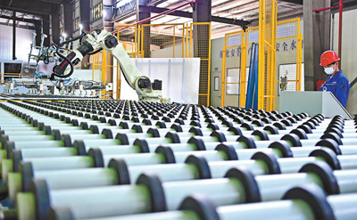 近年来,江西省赣州市定南县积极打造光伏新材料产业集群,助推制造业向绿色、节能提档升级。图为定南县一家企业智能车间内自动化生产线在生产光伏玻璃。