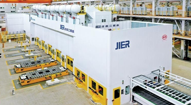济南二机床集团有限公司为比亚迪股份有限公司合肥工厂提供的大型冲压生产线,主要用于汽车外壳的生产制造,产品技术水平世界领先。(资料图片)