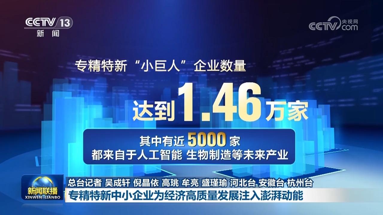 当前,我国已累计培育专精特新中小企业超过14万家,专精特新“小巨人”企业数量达到1.46万家,其中有近5000家都来自于人工智能、生物制造等未来产业。1—7月,规模以上工业专精特新“小巨人”企业增加值同比增长8.7%,增速高于全部规模以上工业2.4个百分点。