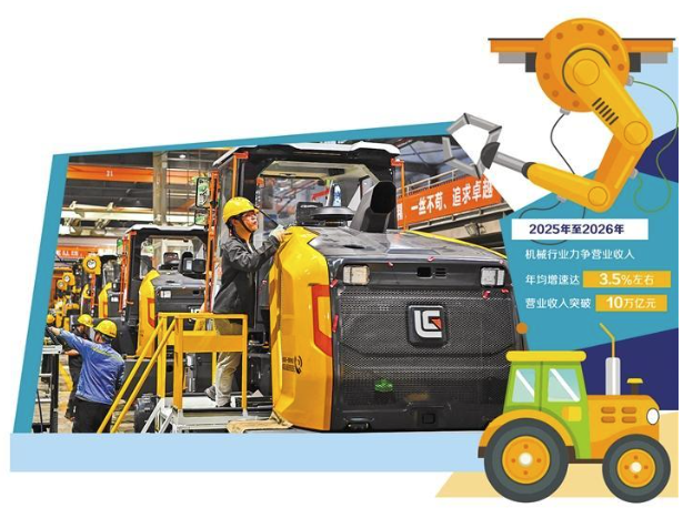 《方案》提出,2025年至2026年,机械行业运行保持平稳向好态势,重点产业链供应链韧性和安全水平持续提升,发展质量效益迈上新台阶,力争营业收入年均增速达到3.5%左右,营业收入突破10万亿元。中国机械工业联合会相关负责人表示,《方案》的目标设定,体现了规模与质量并重的系统性思维,强调供给和需求两侧协同发力。