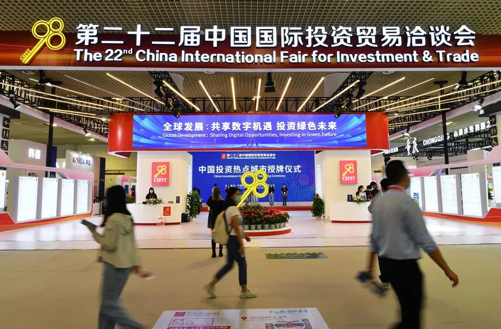 2022年9月8日拍摄的第二十二届投洽会展馆现场。当日,以“全球发展:共享数字机遇、投资绿色未来”为主题的第二十二届中国国际投资贸易洽谈会(简称“投洽会”)在福建厦门开幕。