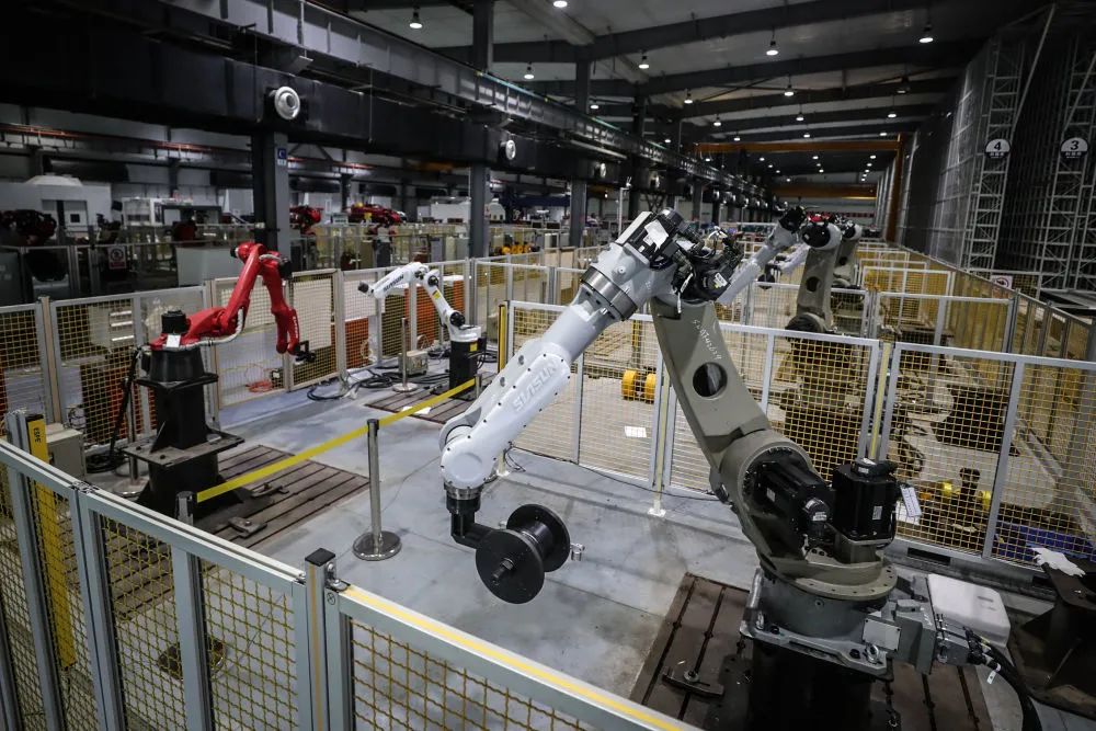 沈阳新松机器人自动化股份有限公司生产车间(2022年4月28日摄)。