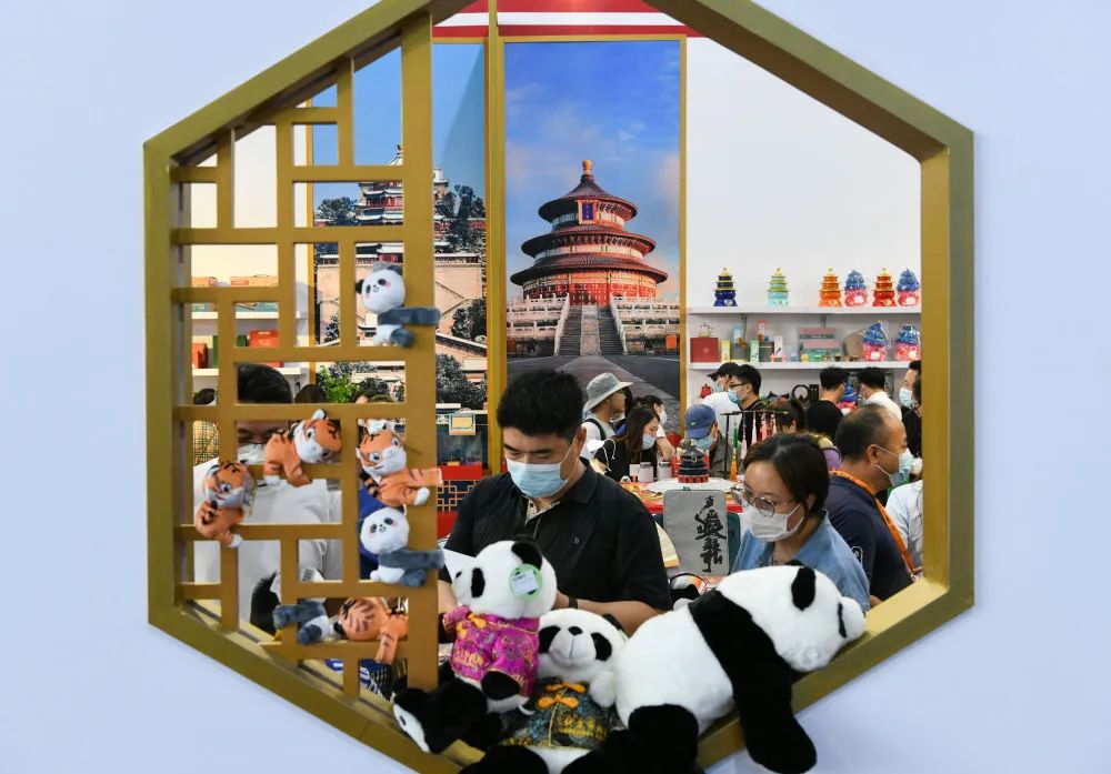 观众在2022年中国国际服务贸易交易会首钢园区的文旅服务专题展区游览购物(2022年9月4日摄)。