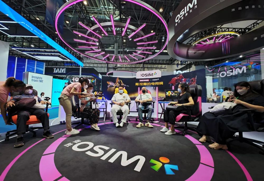 观众在第二届中国国际消费品博览会上体验按摩电竞椅(2022年7月28日摄)。