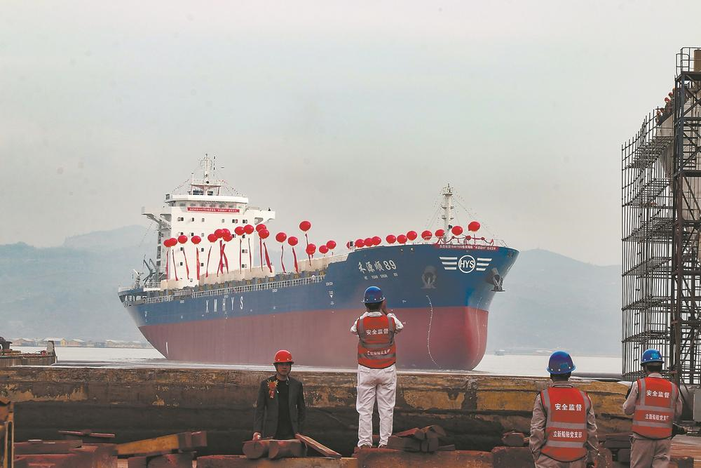 日前,由福建立新船舶工程有限公司承建的2.5万吨“禾源顺89”集装箱船在福鼎市顺利下水。