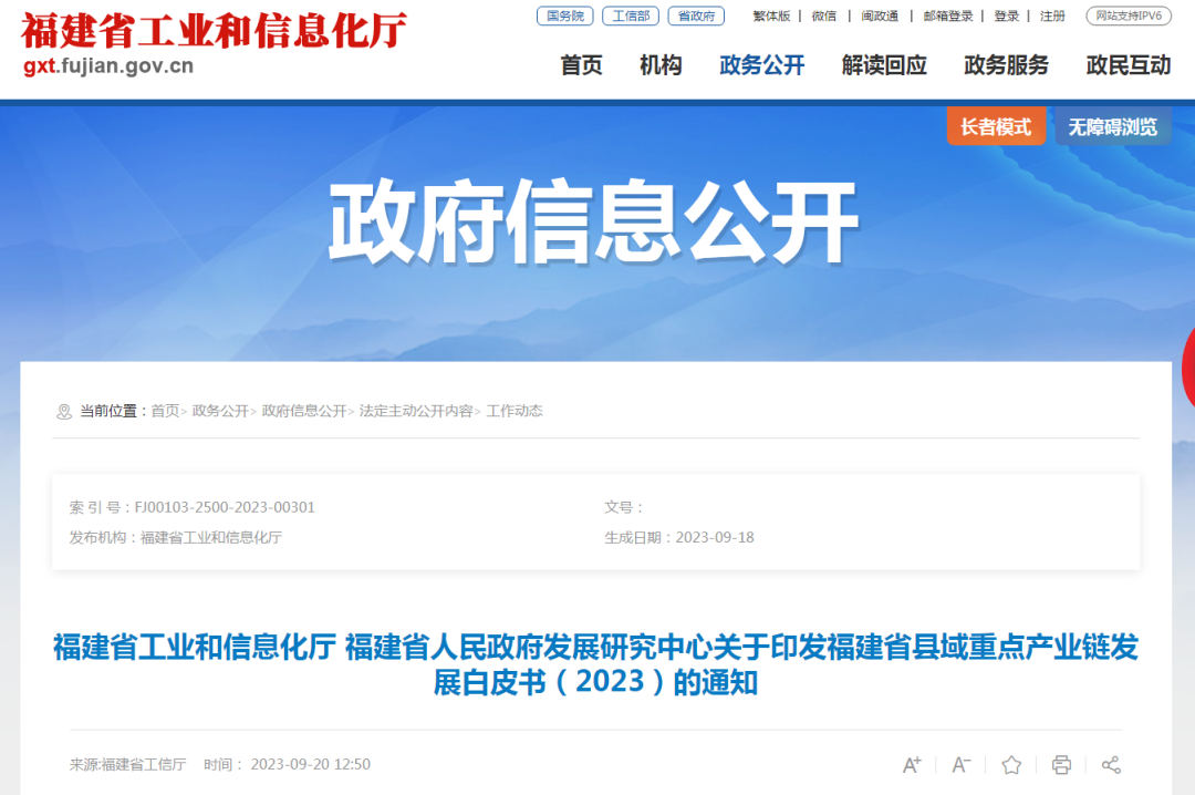 全国首份!福建省工业和信息化厅、福建省人民政府发展研究中心发布《福建省县域重点产业链发展白皮书(2023)》,这是福建省也是全国首份系统介绍县域重点产业链的指导性文件。