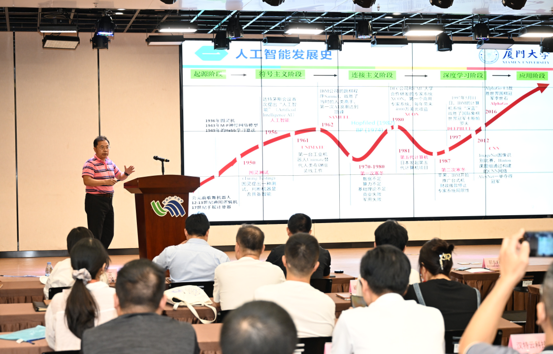 厦门大学电子科学与技术学院教授郭东辉聚焦“人工智能技术最新进展与思考”,介绍人工智能历史及关键技术问题,探讨相关技术进展与未来发展趋势。他指出,多模态融合感知技术、可解释性和透明度、自适应与安全可靠性、人机协同和人机交互、通用类脑计算智能芯片是未来人工智能研究重要的技术方向。