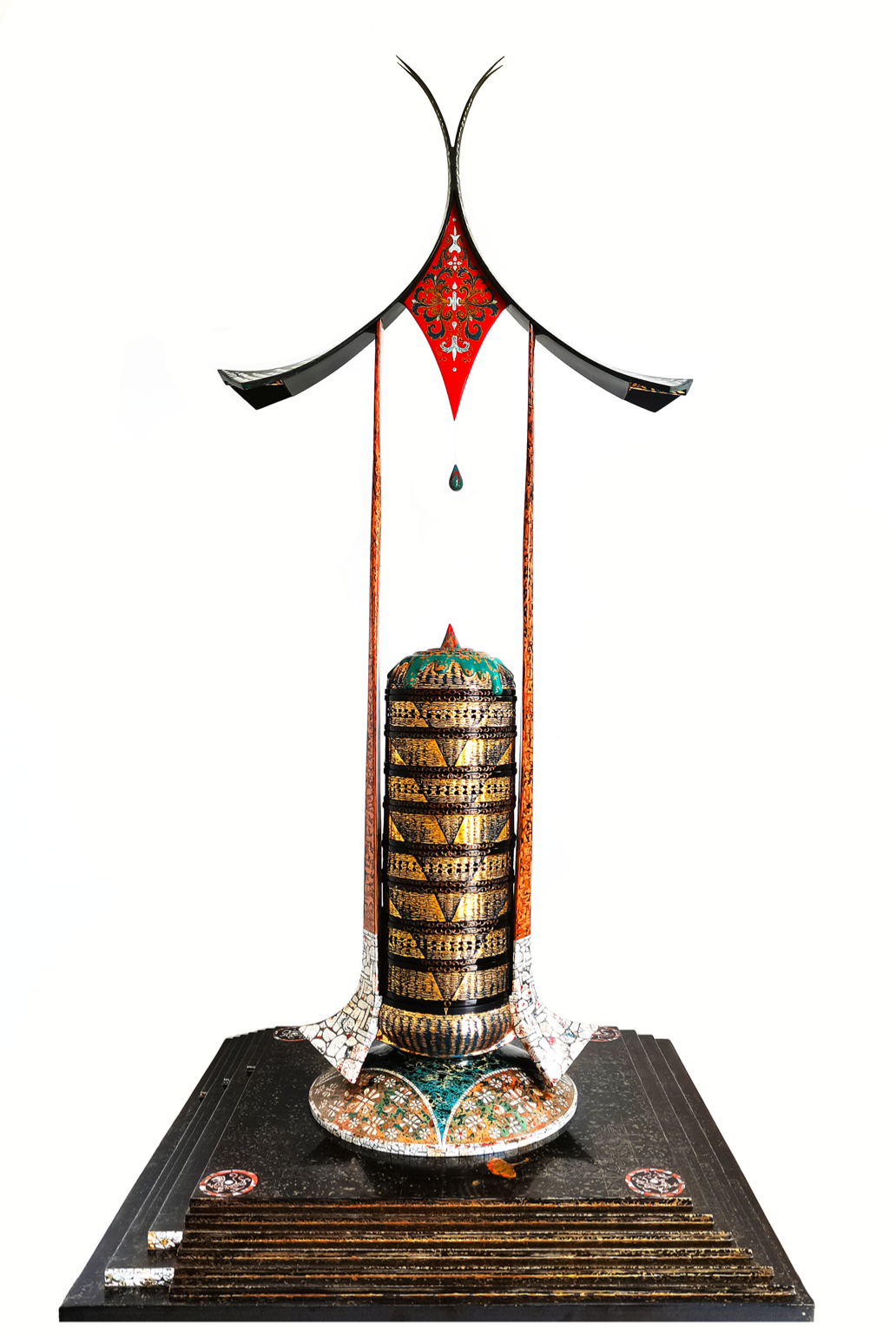 作品简介:灵感源于闽南传统建筑独特的建筑符号,燕尾脊围屋、木结构等元素,充分借助竹编编制工艺,利用丰富的编制工艺制作出作品独有的造型,在竹编胎体上施以永春独有的桐油灰、明漆工艺,再结合推光漆工艺、雕漆工艺、蛋壳镶嵌工艺等制作而成,充分展示了永春竹胎漆器之竹编工艺之美、天然大漆工艺之精美。