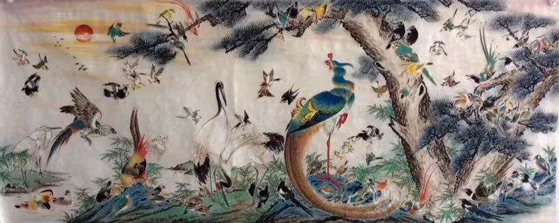 作品简介:作品编织细腻,画面和谐,以百鸟朝凤为主题。“百鸟朝凤”是一个古老的神话传说,讲述了一只凤凰出现,百鸟围绕其舞蹈而来,以此象征吉祥、和平、繁荣等美好愿景。